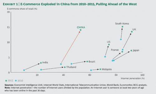 配图-2010年-2015年,中国电商行业爆发式增长,规模超过西方国家